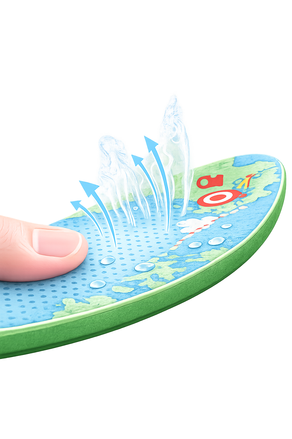 The lightweight top layer feels soft against the skin while allowing air to circulate, helping reduce moisture and keep little feet dry and comfortable throughout the day.